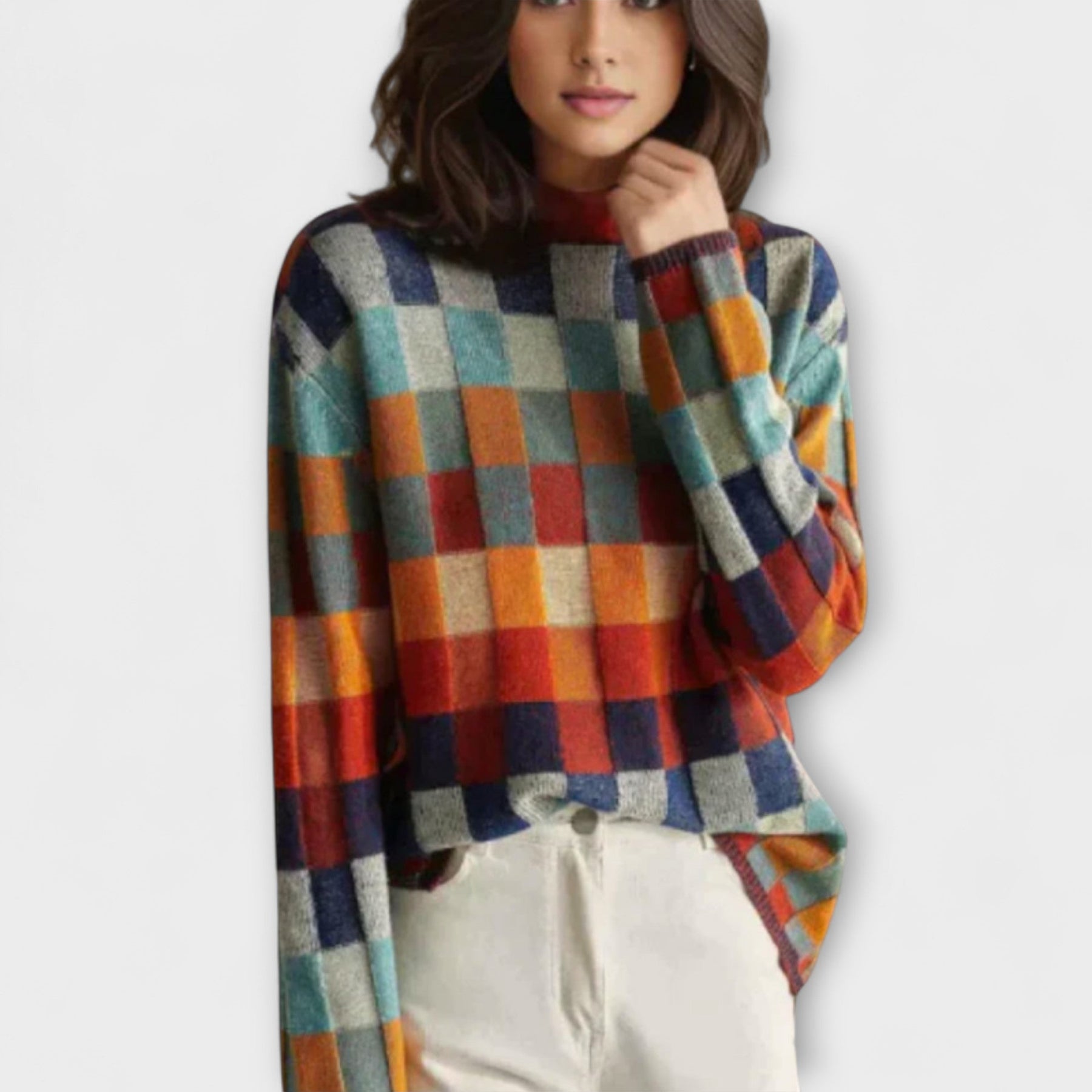 Uživajte u čistom luksuzu i toplini s našom majicom s visokim ovratnikom Blanka od patchwork kašmira – savršenim izborom za zimu! S jedinstvenim detaljima u patchworku i toplim ovratnikom, održava vaš stil i udobnost tijekom hladne sezone.