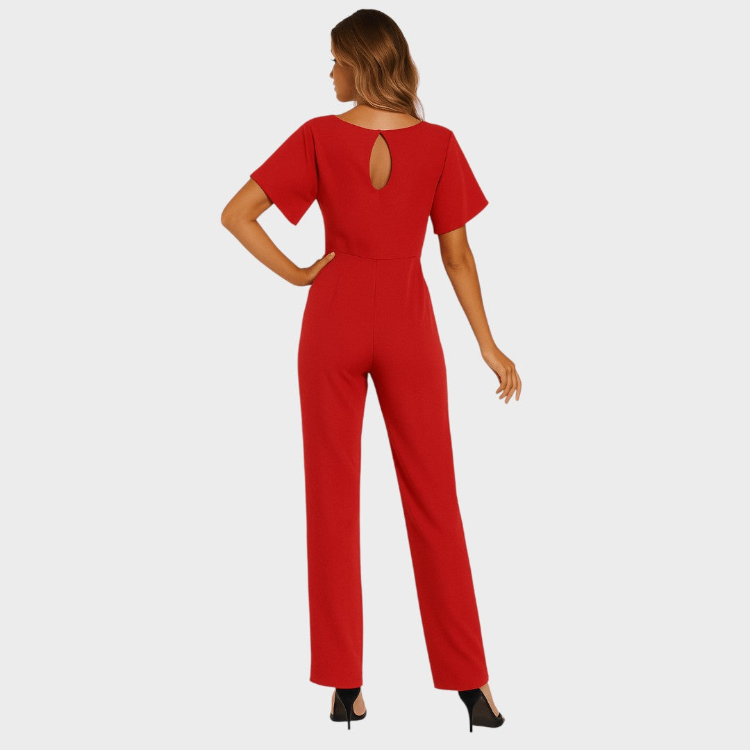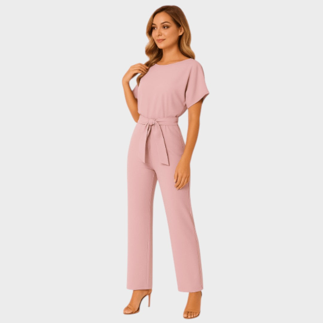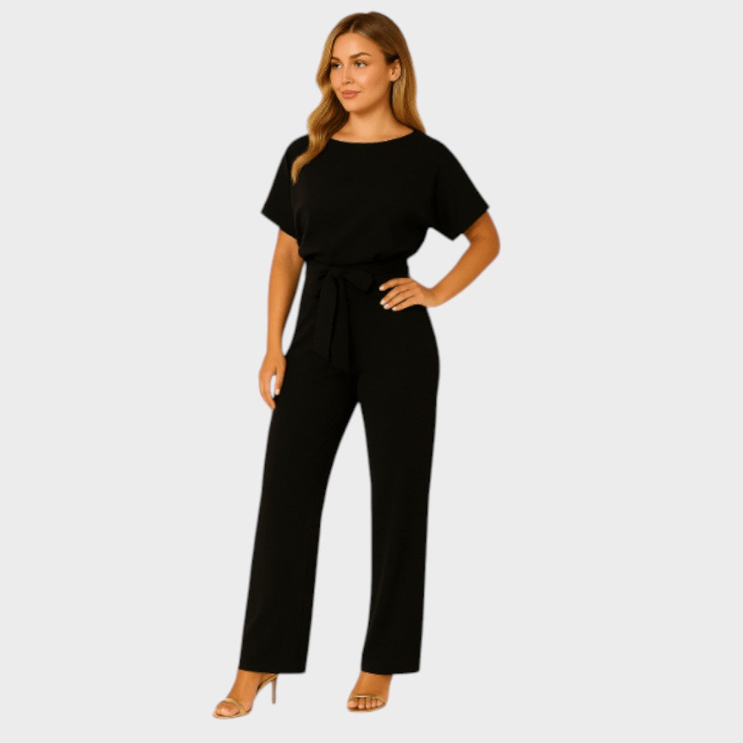 Ovaj chic kombinezon spaja udobnost i eleganciju u jednom komadu. Široke nogavice i pojas u struku vizualno produžuju figuru i naglašavaju ženstvenost, dok jednostavan kroj ostavlja dojam profinjenosti. Idealan je izbor za posao, večernji izlazak ili posebne prilike gdje želite izgledati moderno i samouvjereno.