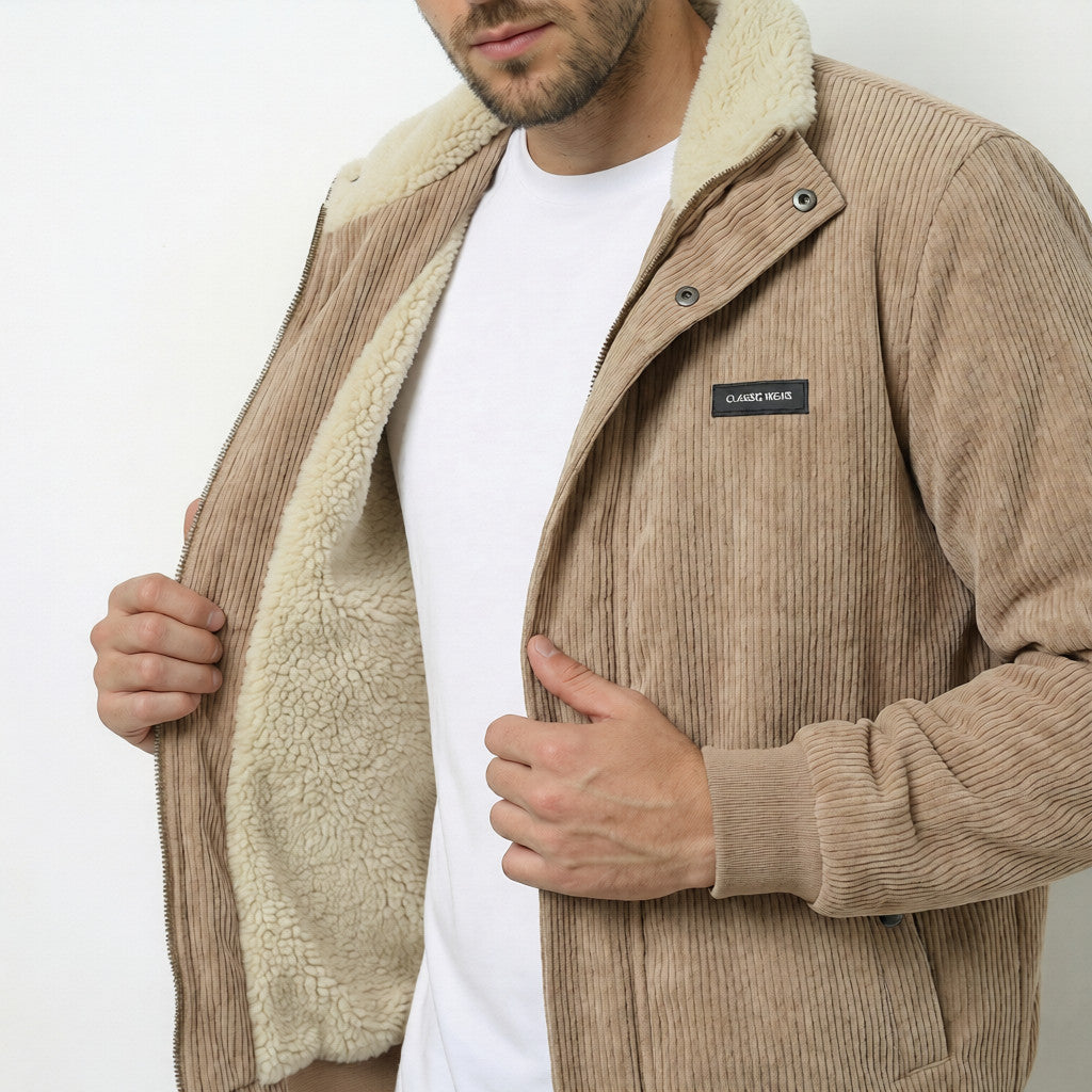 Otkrijte savršenu ravnotežu između retro mode i modernog odijevanja s ovom manšestrovom jaknom s podstavom od sherpe. Njezin klasičan dizajn ne samo da će vam dati eleganciju, već će vas i učinkovito zaštititi od hladnoće zahvaljujući mekoj i toploj podstavi. Idealan za one koji cijene udobnost, a da pritom ne odustaju od stila.