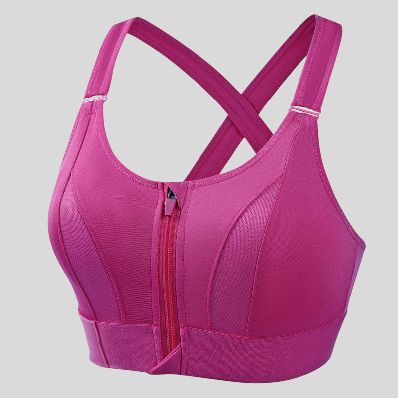Otkrijte savršeni sportski grudnjak koji prati vašu najintenzivniju rutinu uz potpunu potporu i maksimalnu udobnost. S inteligentnim dizajnom koji uključuje praktično prednje kopčanje i križane naramenice na leđima, ovaj model pruža prilagodljivo pristajanje i sigurnost u svakoj vrsti treninga. Prozračna tkanina i podesivi pojas jamče stabilnost bez kompromisa u slobodi pokreta.