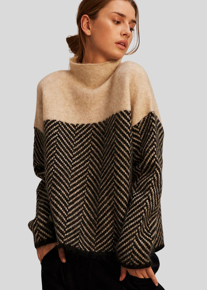 Ova dolčevita spaja suvremeni dizajn i ugodnu udobnost u svakom detalju. S elegantnim uzorkom i kvalitetnom izradom, pruža profinjen stil bez odricanja od praktičnosti. Višenamjenski komad, idealan za hladne dane kada želite izgledati šarmantno i samouvjereno.
